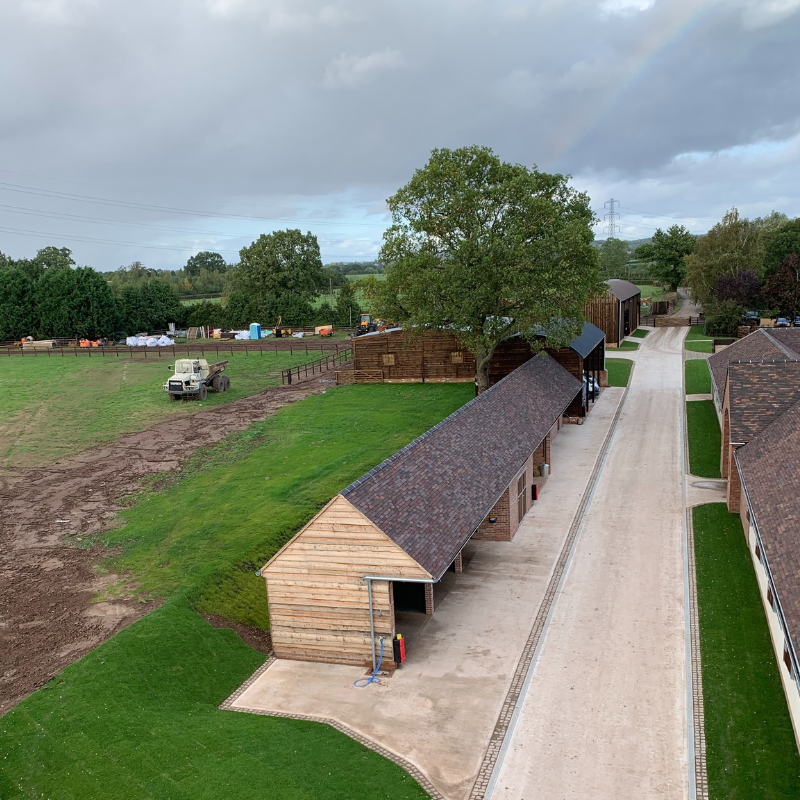 This horse race yard development was a comprehensive transformation of the site, beginning with equestrian building design and then large-scale earthworks to create a new one-mile horse gallop and sand canter complete with irrigation and dust-suppression systems. Multiple barns were renovated and restored, new stables were constructed, and extensive post-and-rail fencing was installed throughout. The project also included the build of a new ménage, a range of concrete structures such as a muck pit and slabs, and significant landscaping and drainage works to ensure the entire facility functions efficiently and to a professional racing standard.